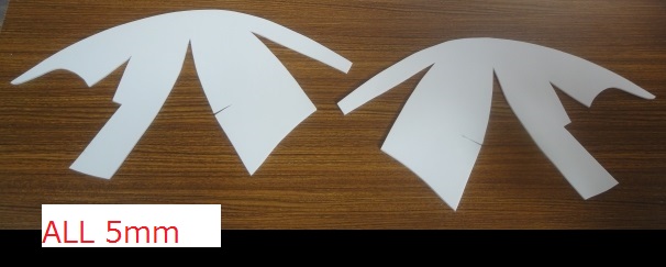 ・型紙中の2mm、5mmといった記載はコスプレボード、COSボード匠等の厚みです。