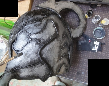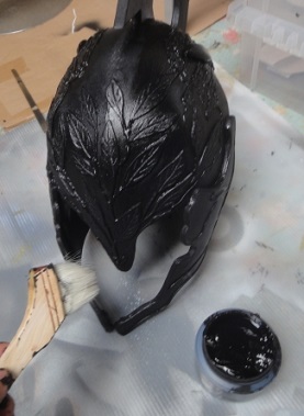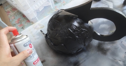 ベースカラーとしてラッカースプレーで黒を塗装する。