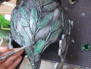 筆でMr.カラーのクリアーグリーンを塗装する。