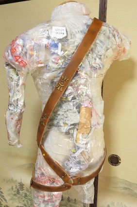 Glue Synthetic leather with "Bond G17"(one of sticky glue in Japan). Details are here. Don't use fire until drying, because "Bond G17" burns easily. Don' use a Lighter etc until drying.