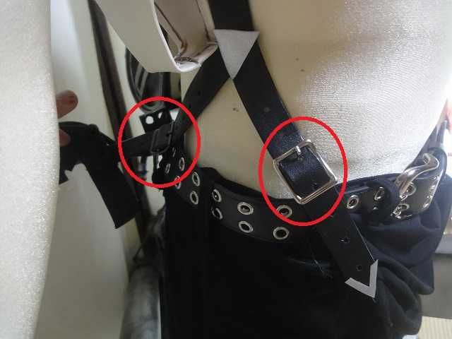 進撃の巨人 原作版 立体機動装置の作り方(型紙付き) その5 装着方法 ![]() 立体機動装置の作り方を見る まずは動画を見ましょう 着用方法 着用は全て一人で行える。(確認済み) パーツ分解状態。 ![]() 本物の刃とフェイク刃を鞘に入れる。 ![]() 背中パッドにタンクをマジックテープで取り付ける。 腰パッドを作らない場合は、他の取り付け方を利用する。詳しくはこちら。 ![]() 左右の腰巻をマジックテープで貼り合わせる。 ベルトを通す。 ![]() フレーム部をベルトにマジックテープで取り付ける。 ![]() 腰巻を装着する。 ![]() 白いパーツと鞘をマジックテープで装着する。 白いパーツを作らない場合は、他の取り付け方を利用する。詳しくはこちら。 ![]() 白いパーツと鞘をマジックテープで装着する。 ![]() フックをベルトに引っ掛ける。 ![]() ベルトを締める。 ![]() 腰パッド下部のフックをベルトにひっかける。 ![]() タンクとフレームをマジックテープで装着する。 ![]() ベルトを締める。 ![]() ベルトを締める。 ![]() タンクと鞘のケーブルを差し込む。 ![]() タンクのマジックテープとフレームのマジックテープを貼り合わせる。 ![]() アンカーを差し込む。 ![]() グリップをホルスターに収納する。 ![]() 装着完了。 ![]() 立体機動装置の作り方を見る