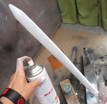 ベースカラーとしてラッカースプレーで白を塗装する。